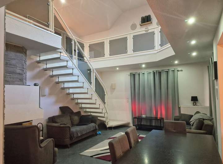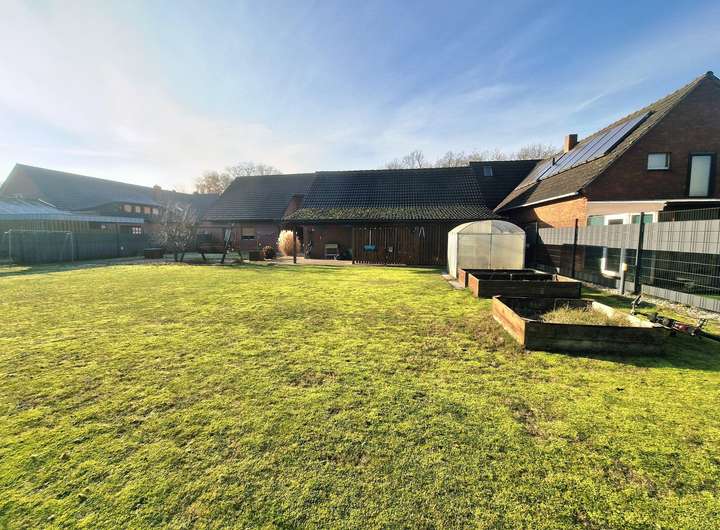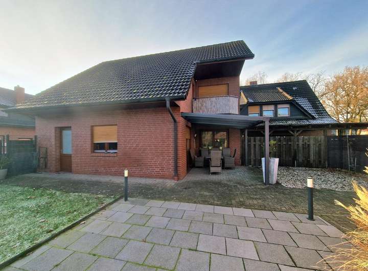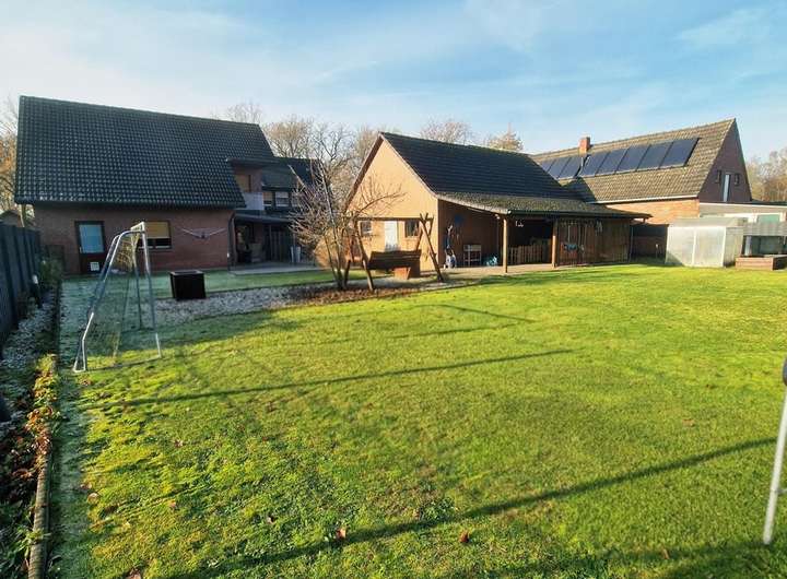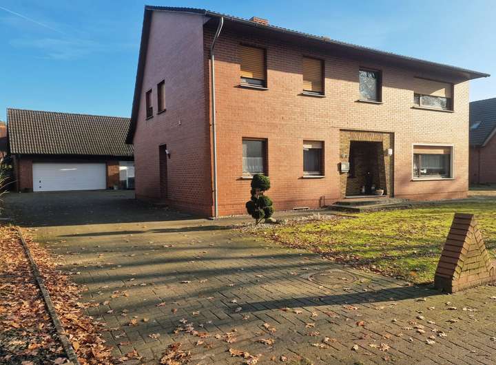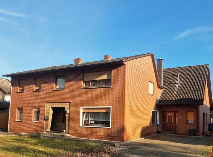 Das großzügige Zweifamilienhaus befindet sich in ruhiger Wohnlage von Garrel und setzt sich aus einem Bestandsgebäude von 1952 (Erweiterung 1968) sowie einem modernen Anbau aus 1996 zusammen. Die Verbindung des Dachgeschosses beider Gebäudeteile schafft zwei große Wohneinheiten mit separaten Zugängen. Der hintere Hausteil bietet dank Kamin, überdachter Terrasse und Balkon besonderen Wohnkomfort.