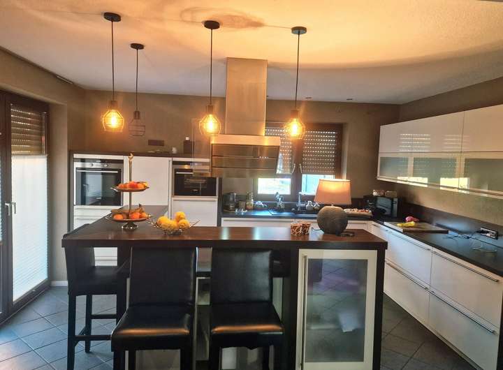 Balkon, Terrasse, Garten, Keller, Vollbad, Einbauküche, Gäste-WC, Kamin, Laminat, Fliesen