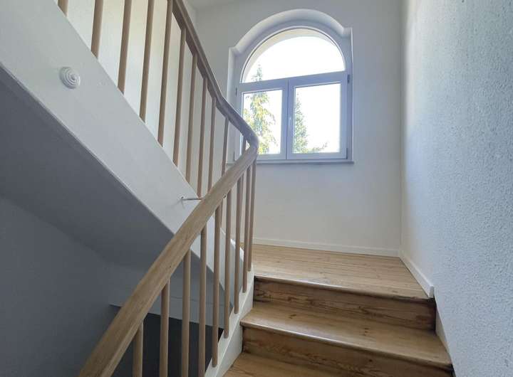 Über das renovierte Treppenhaus erreichen Sie die Wohnung.