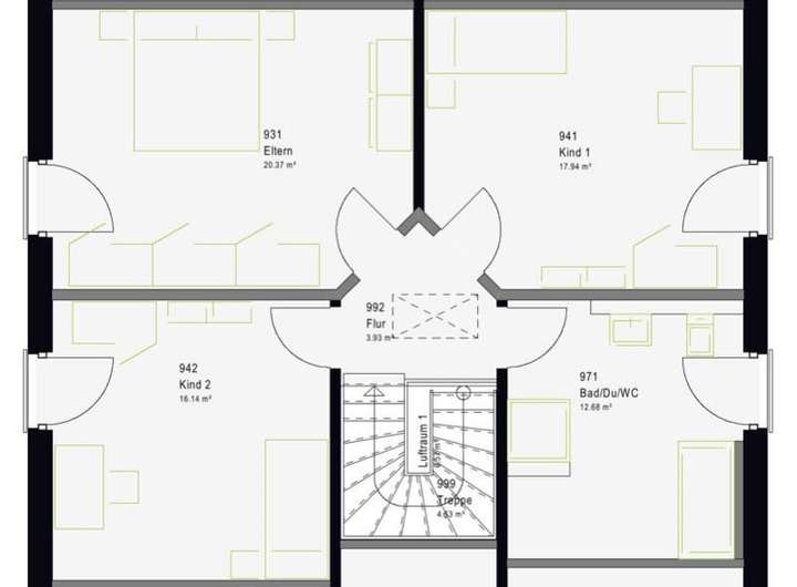 Schon beim Eintreten in das Einfamilienhaus LifeStyle 16.02 S macht der große Wohn-Ess-Bereich auf sich aufmerksam. Die durchdachte Grundrissfigur des Erdgeschosses sorgt für eine klare Trennung zwischen dem Wohn- und Schlafbereich mit eigenem Badezimmer. Das Dachgeschoss besticht durch drei geräumige Kinderzimmer und dem zweiten Bad.