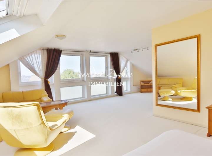 Zusätzlich zu der Wohnfläche von 126 m² erwartet Sie im Dachgeschoss ein weiterer, großzügiger Raum von etwa 34 m² – perfekt für Homeoffice, Gäste oder Ihr persönliches Rückzugsparadies. In der Baugenehmigung ist das Dachgeschoss nicht als Wohnfläche sondern als Speicher und Abstellraum genehmigt, eine nachträgliche Genehmigung als Wohnfläche ist mit dem örtlichen Bauordnungsamt abzustimmen.