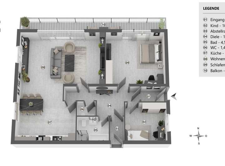 - Großzügiger Balkon mit ca. 20 m² Fläche und Panoramablick