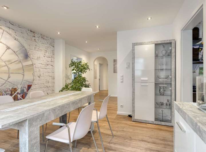 Das im Jahr 1979 errichtete Gebäude wurde regelmäßig instand gehalten und in zentralen Bereichen modernisiert. Es überzeugt durch seine gepflegte Bausubstanz, helle, gut geschnittene Räume und eine durchdachte Grundrissgestaltung, die Familien und Mehrgenerationenhaushalten gleichermaßen attraktive Wohnoptionen bietet.