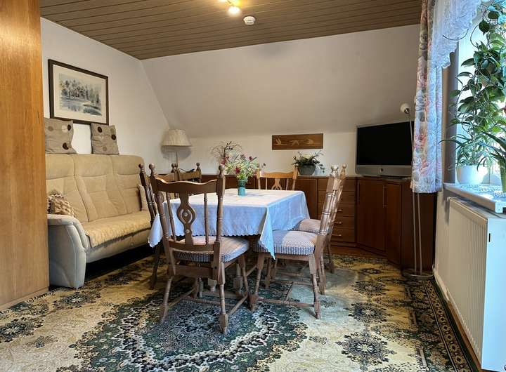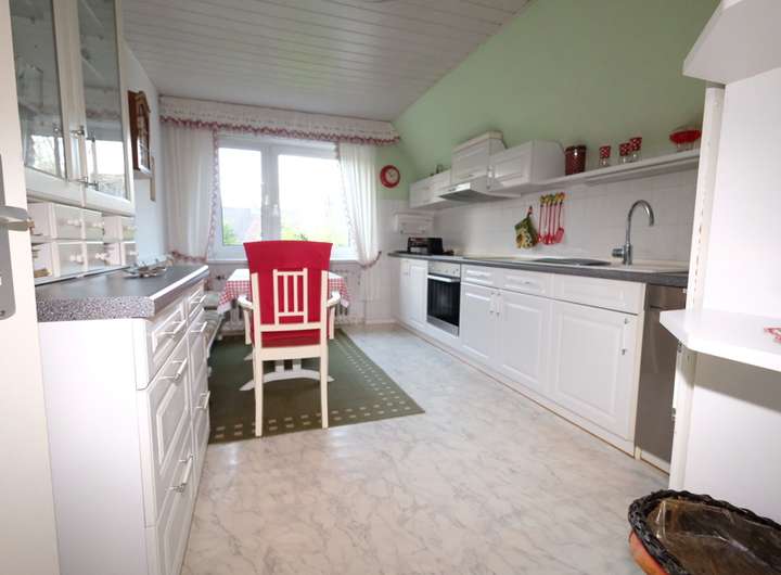 Zum Verkauf steht ein Einfamilienhaus mit zwei integrierten Wohnungen welches man natürlich auch als eine Wohneinheit nutzen kann. Das Haus steht auf einer Anhöhe und einem Grundstück mit 1.140 Quadratmeter Fläche unmittelbar im Ortszentrum von Neuburg mit Blick über die Dächer des Ortes und ist durch eine individuelle Zufahrt mit automatisch verschließbarem Tor etwas abgeschirmt gelegen. Terrassenförmig sind sehr geschmackvoll Gartenbereiche gestaltet und mit der Zufahrt zur Hausgarage abgestimmt. Seit Errichtung des vollständig unterkellerten Hauses im Jahr 1964 wurden seit 1992 und insbesondere im Zeitraum von 2005 bis 2015 umfangreiche Modernisierungen vorgenommen. Dazu zählen u.a. eine neue Dacheindeckung ( 2005 ), eine Solaranlage mit Warmwasseraufbereitung und Heizungsunterstützung ( 2005 ) sowie die Neugestaltung der Bäder ( 2000 ). Aufgrund der Vielzahl der Zimmer und der Aufteilung im Haus empfiehlt sich dieses Haus für die große Familie oder dass Generationenwohnen zwischen jung und alt. Die Gesamtwohnfläche von 185 Quadratmetern teilt sich auf in eine 3 - Zimmer Wohneinheit im Erdgeschoss mit ca. 113 Quadratmetern mit Bad und Gästezimmer im Souterrain. Das Herzstück dieser Wohnung ist das süd-westlich ausgerichtete Wohn- und Esszimmer mit insgesamt ca. 48 Quadratmeter Wohnfläche. Ein großzügiger Bereich mit ausreichend Platz für eine Tafel die förmlich nach gemütlichen Runden mit der Familie oder Freunden ruft. Aktuell wird ein Teil dieser Fläche als Büro genutzt. Vom Essbereich gelangt man direkt auf die Terrasse mit Markise und herrlichem Blick auf die Sonnenuntergänge. Über eine breite einladende Holztreppe gelangt man in das Dachgeschoss mit einer 3 Zimmerwohnung mit einer Wohnfläche von ca. 72 Quadratmetern, einer ca. 14,6 Quadratmeter großen modernen Küche , einem Bad mit Fenster und einem Balkon. Das Haus ist durch die großen Fensterflächen lichtdurchflutet und bietet im Kellerbereich große Räumlichkeiten für HWR, Werkstatt und Abstellflächen.