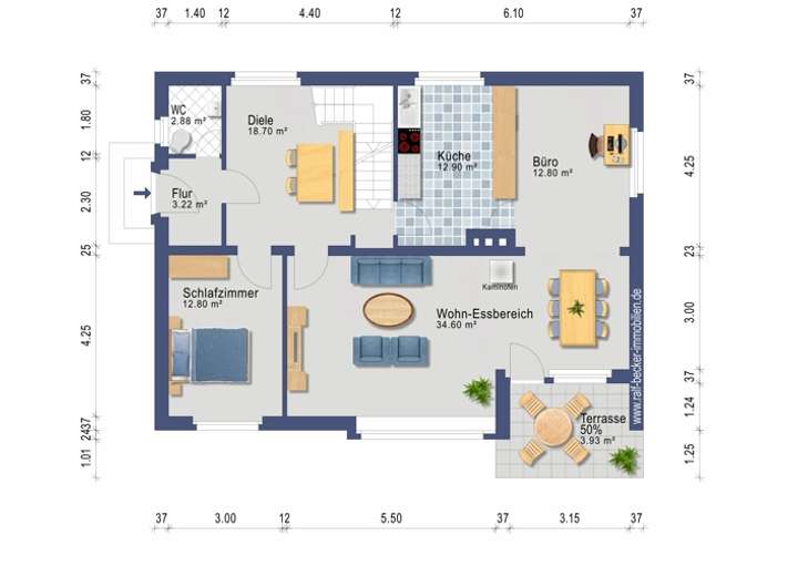 - massive Außenwände 36,5 cm