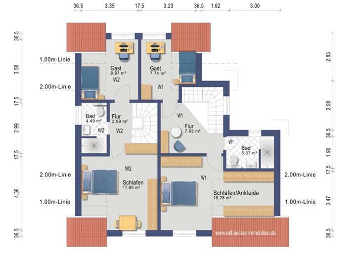 - Lüftungsanlage in beiden Wohnungen mit Entfeuchtungsanlage in den Badezimmern
