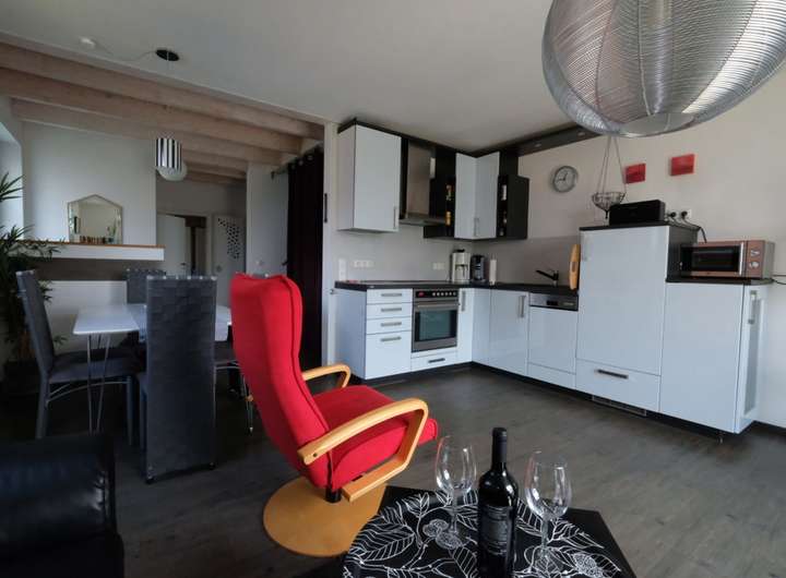 - ca. 38 m² große moderne Wohnküche mit Kamin