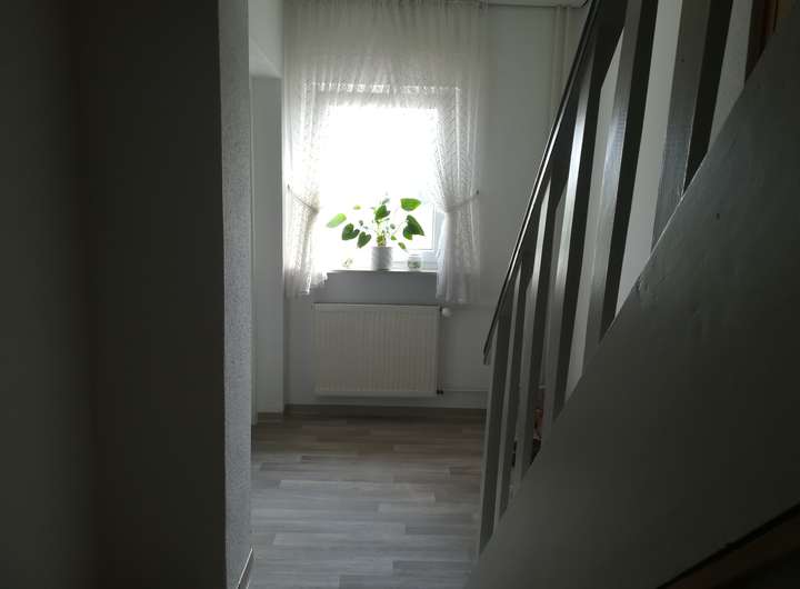 Die Doppelhaushälfte liegt am Ortsrand mit Blick auf die Felder und sucht ruhige und nette Mieter.