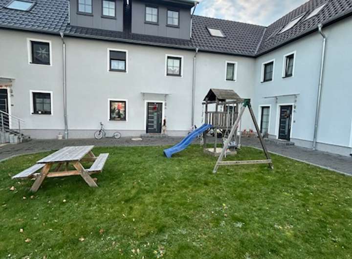 Im Innenhof ist ein kleiner Spielplatz für Kinder vorhanden.