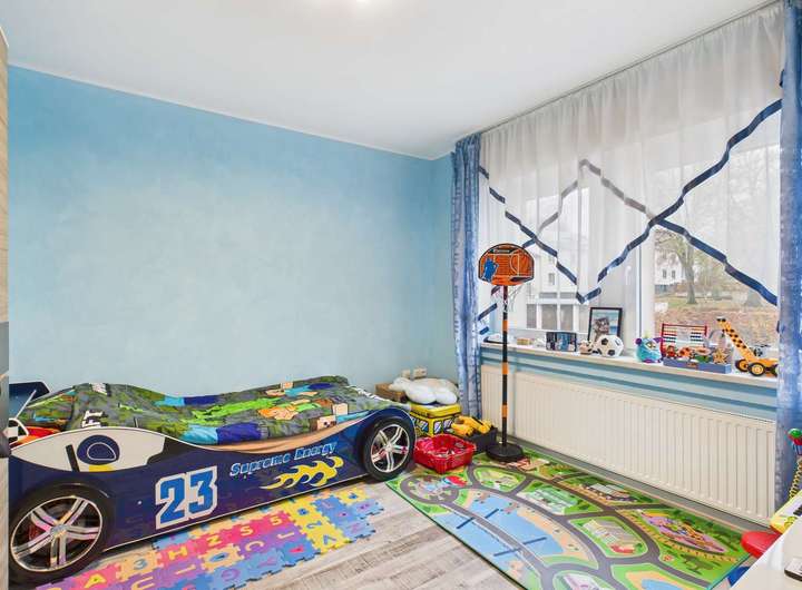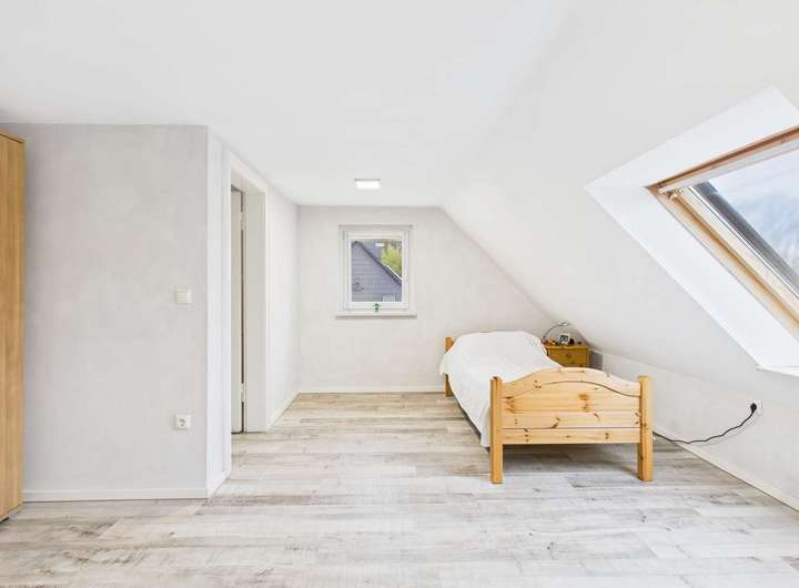 Auf rund 121 m² Wohnfläche entfalten sich lichtdurchflutete Zimmer, die den Alltag in ein lebendiges, freundliches Spiel aus Licht und Raum verwandeln. Sechs vielseitige Räume laden dazu ein, eigene Träume zu verwirklichen – sei es als Rückzugsorte oder kreative Oasen. Das ausgebaute Dachgeschoss schwebt wie ein stiller, magischer Rückzugsort über allem.