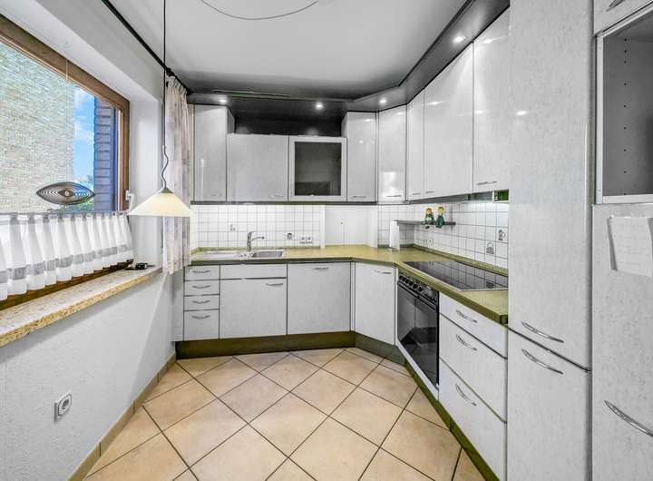 - Küche im 90er-Stil mit Miele-Geräten (Cerankochfeld, Spülmaschine)