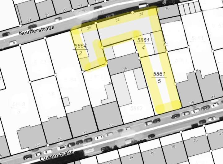 - Areal mit 2 Zufahrten (Neuffer/Luisenstraße) und über 2.500 m² Entwicklungsfläche
