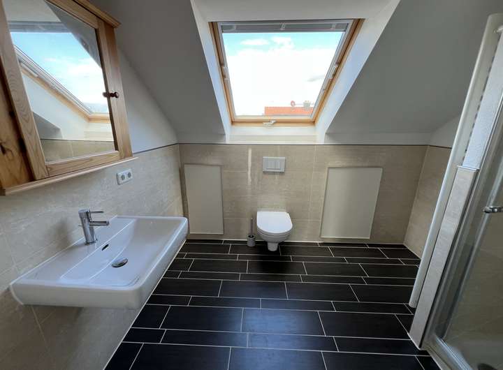 • 2 Tageslicht-Bäder, davon eines mit Wanne und Dusche, das andere nur mit Dusche