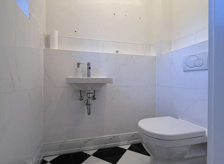 Dieses helle Reihenmittelhaus in Massivbauweise verbindet moderne Architektur mit einem freundlichen und hellen Ambiente. Das Haus verfügt über große Fensterfronten und ist insgesamt sehr hell. Die Ausstattung ist modern und geschmackvoll. Aktuell werden alle Räume noch weiß gestrichen (die Bilder zeigen noch den vorherigen Zustand). Stilvolle Details verbinden sich in diesem Objekt mit funktionaler Raumaufteilung.