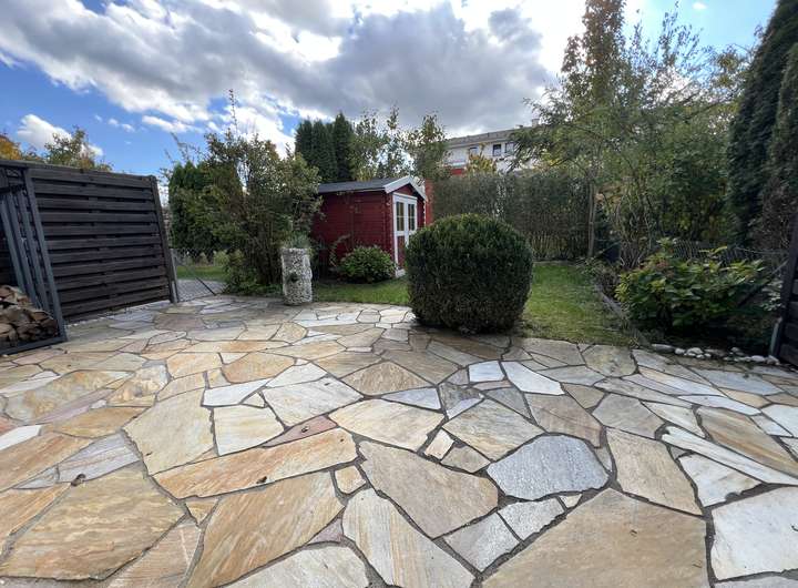• Pflegeleichter Garten mit kleinem Gartenhaus