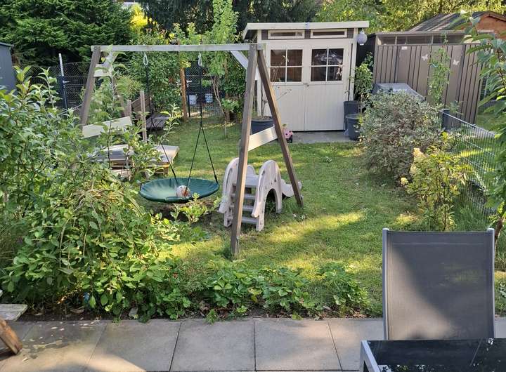 Bestimmtes Mobiliar kann auf Wunsch übernommen werden. Gartenmöbel, Gartenhaus, Schaukel und Sandkasten bleiben in jedem Fall im Objekt und sind im Kaufpreis enthalten. Zusätzlich können weitere Möbelstücke wie z. B. Kleiderschränke, Betten oder Sofas nach Absprache übernommen werden.