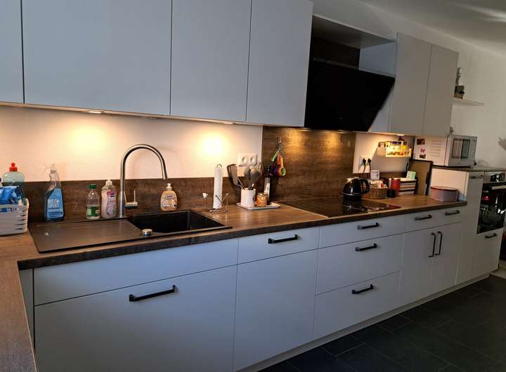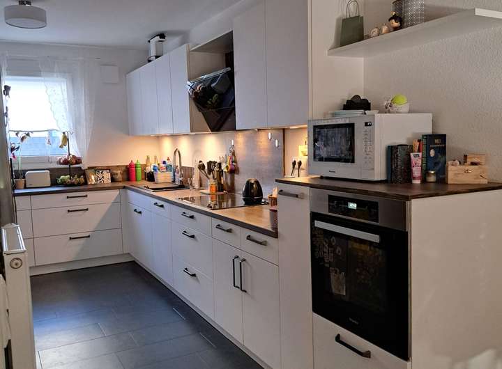 Moderne Einbauküche mit hochwertigen Elektrogeräten (u. a. Miele)