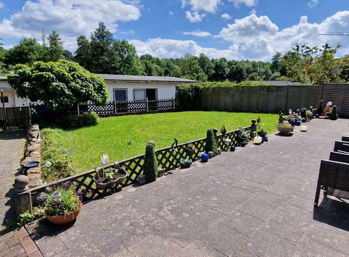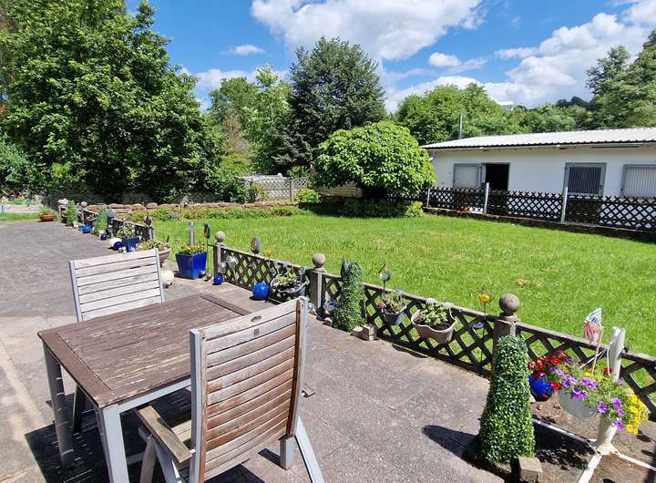 - Terrasse mit großem Garten und Zugang zu den Pferdeboxen