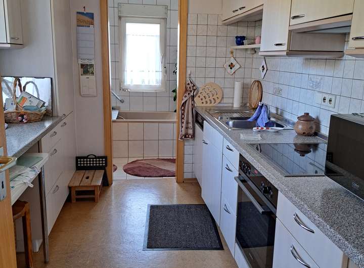 Zum Verkauf steht dieses gepflegte und bis vor kurzem noch bewohnte, räumlich gut aufgeteilte EFH in Göppingen-Bezgenriet. Es verfügt über 4 Zi, Gäste WC und Tageslichtbad mit Wanne. Eine separate Dusche befindet sich im EG in einem großen beheizten Raum mit Fenster, der zudem viel Abstellfläche bietet und Anschlüsse für Waschmaschine, Trockner und Gefriere hat. Da in diesem Raum auch die Heizungsanlage steht, wurde dieser nicht zu den qm Wohnfläche mit einbezogen. Für Wellness steht im Nebenraum eine Sauna zur Verfügung. Die Küche ist mit einer Einbauküche inkl. Elektrogeräte ausgestattet. (im Preis bereits enthalten)
