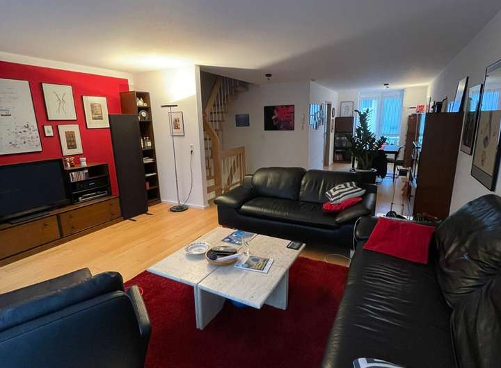 Im lichtdurchfluteten Erdgeschoss befindet sich die Küche und der offene und sehr geräumige Wohn und Essbereich, außerdem gelangen Sie vom Wohnbereich auf die gemütliche und begrünte Terrasse die auf der Südseite liegt und zum geniessen der Sonnenstunden am Tag aber auch am Abend einläd.