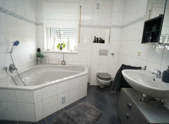 - Fliesenböden in Eingangs- und Sanitärbereichen