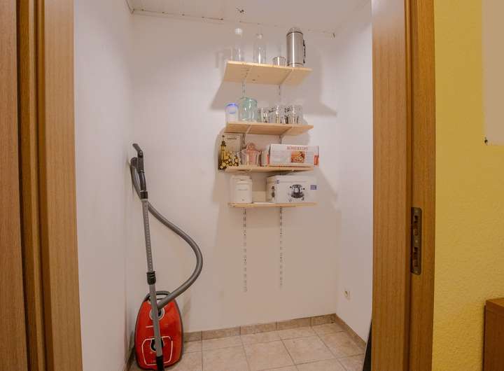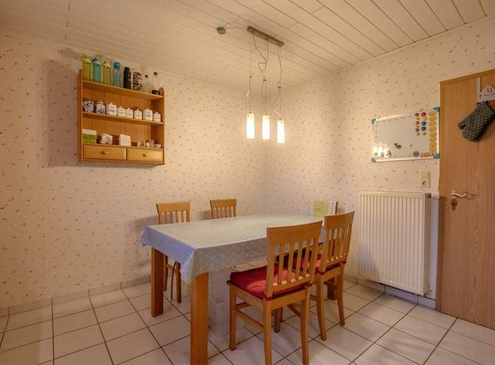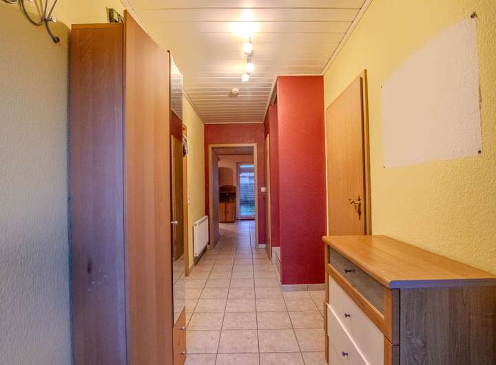 Die Wohnung ist im Erdgeschoss mit pflegeleichten Fliesen als Bodenbelag versehen. Ebenso verfügt die Treppe und der Flur im Dachgeschoss über Fliesen.