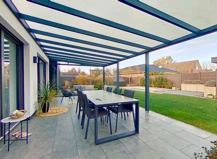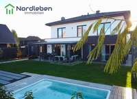 Im Außenbereich erwartet Sie ein weiteres Highlight: Ein hochwertig angelegter Einbaupool, der Ihnen im Sommer Erholung und Freizeitvergnügen direkt im eigenen Garten ermöglicht. Ergänzend bietet die Garage zusätzlichen Komfort und ist mit einem eigenen Badezimmer ausgestattet – ideal für Poolgäste, Hobbyräume oder flexible Nutzungen.