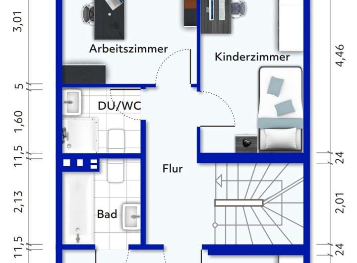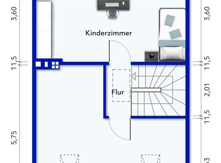 Im 2. Obergeschoss befindet sich ein weiteres großes Kinderzimmer und weitere Ausbaureserve.