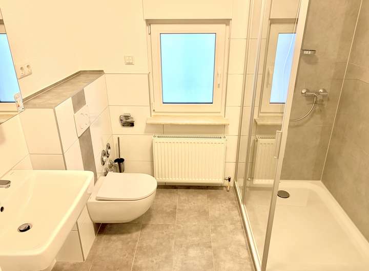 - Duschbereich wand-und Deckenhoch gefliest (90x120)