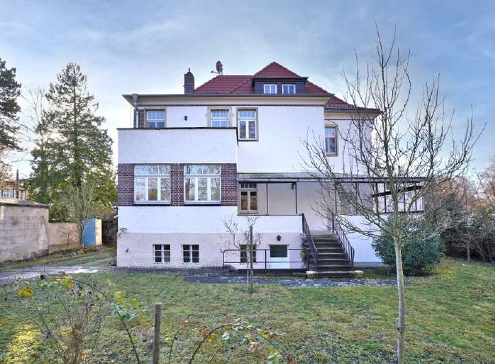 Auf rund 279 m² Wohnfläche bietet die Villa ein großzügiges, familienfreundliches Raumangebot: repräsentative Wohnräume im Erdgeschoss mit Küche, Wintergarten und Terrasse, mehrere Schlaf- und Kinderzimmer im Obergeschoss sowie zusätzliche Wohn- und Arbeitsbereiche im Dachgeschoss. Charakteristische Details wie historische Innentüren, eine massive Holztreppe und Parkettböden prägen die hochwertige Ausstrahlung.