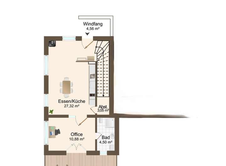 • Erdgeschoss: Wohn-/Essbereich mit Zugang zur Terrasse, Küche,