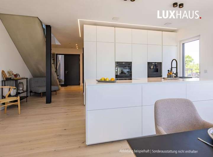 Das stilvolle Einfamilienhaus ist ausgestattet mit Objekten deutscher Markenhersteller. Um Ihre individuelle Note zu betonen, laden wir Sie in unsere LUXHAUS Boutique ein - dort erwarten Sie unsere LUXHAUS Innenarchitekten, um mit Ihnen gemeinsam die Ausstattung festzulegen.