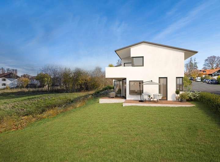 Die gezeigten Grundrisse und Visualisierungen verstehen sich als Beispiel und können nach individuellen Vorstellungen angepasst werden. Alternativ bietet das Grundstück auch ausreichend Fläche für den Bau eines großzügigen Einfamilienhauses. Stellplätze, Carport oder Garage lassen sich problemlos einplanen.