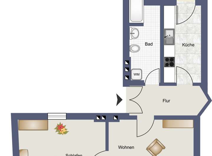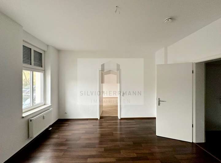 im Erdgeschoss eines Wohnhauses mit 8 weiteren Mietern. Die Wohnung verfügt über ca. 63 m² Wohnfläche und besteht aus zwei Zimmern sowie einer Küche und einem Badezimmer. Von der Küche aus haben Sie Zugang zu einer Terrasse mit Blick auf den ruhigen Innenhof. Im gefliesten Badezimmer gibt es ein Badewanne, WC, Waschbecken, Badheizkörper sowie den Waschmaschinenanschluss. Zur Wohnung gehört ein Kellerabteil.