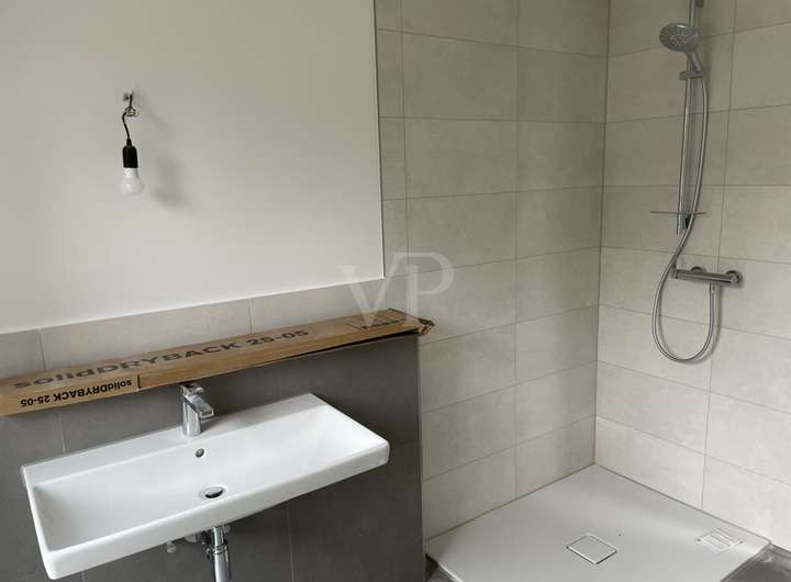 Die Wohnfläche von ca. 150 m² verteilt sich auf insgesamt fünf Zimmer. Die Böden sind mit Fliesen und Designerboden belegt.