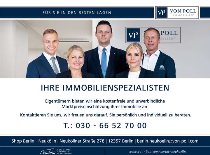 Wir bewerten gern kostenfrei Ihre Immobilie entsprechend dem aktuellen Marktwert, entwickeln eine Ihrem Objekt angepasste Verkaufsstrategie und stehen Ihnen bis zum erfolgreichen Verkauf zur Verfügung. VON POLL IMMOBILIEN steht als Maklerunternehmen mit seinen Mitarbeitern und Kollegen für die Werte Seriosität, Zuverlässigkeit und Diskretion. Unser bundesweites und internationales Netzwerk ermöglicht es uns, Verkäufer bzw. Vermieter und Interessenten bestmöglich zusammenzuführen. Wir können Ihnen bereits in den ersten Gesprächen mitteilen, wie viele vorgemerkte Suchinteressenten wir haben. Kommen Sie einfach bei uns vorbei, rufen Sie uns an oder senden Sie uns eine E-Mail – wir freuen uns, Sie kennen zu lernen.