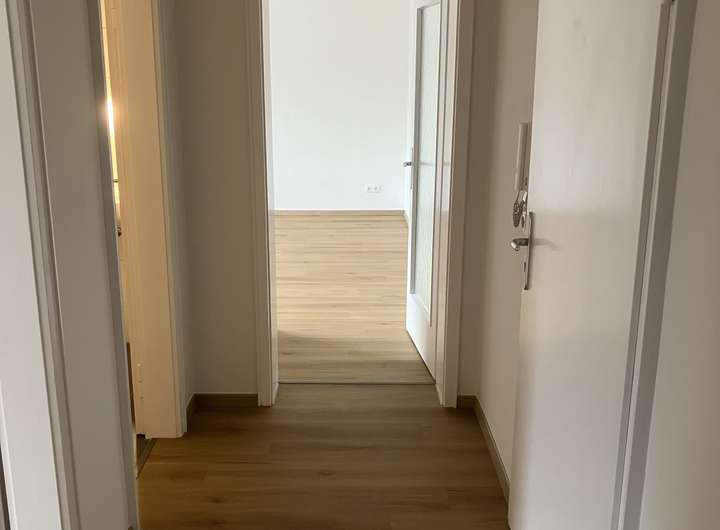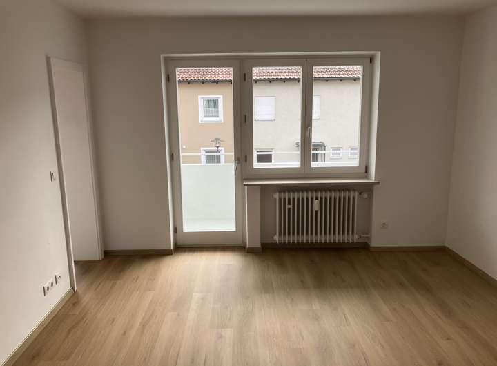 Die frisch renovierte 2-Zimmer-Wohnung im 1. Obergeschoss besticht durch einen hellen, modernen Wohnraum und ein ruhiges Schlafzimmer. Ein Balkon lädt zum Entspannen im Freien ein. Das Badezimmer ist modern gefliest.
