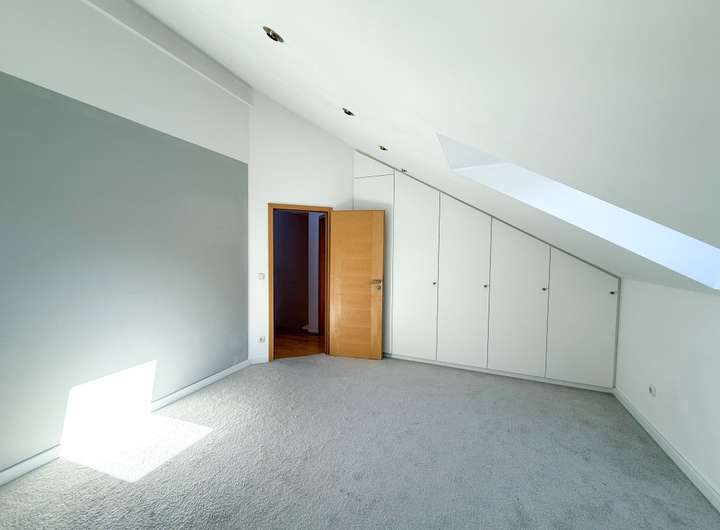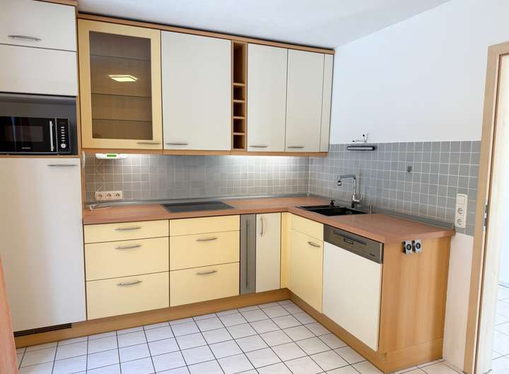 • EG: geräumiges Wohnzimmer im Split Level mit Ausgang Terrasse, sep. Küche mit hellen Einbauten und E-Geräten, Abstellraum, Gast-WC