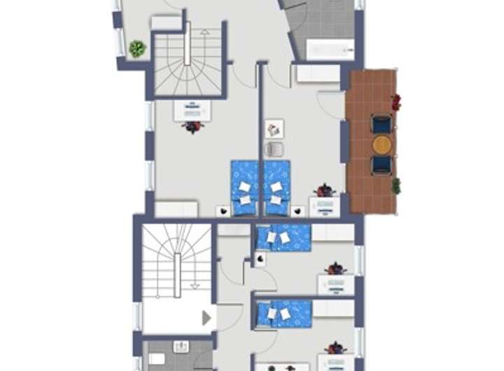 4 Zimmer, Küche, Bad, Gäste WC und eine große Dachterrasse. Ca. 75 m² Wohnfläche - für 660 Euro Nettokaltmiete vermietet.