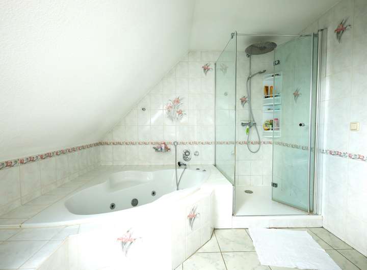• Badezimmer mit Whirlpool-Eckbadewanne & Regendusche