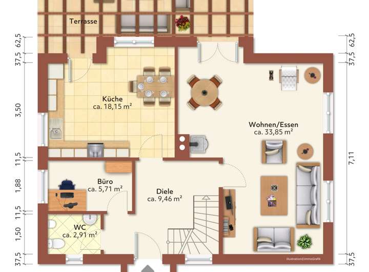 • Ca. 120 m² Wohnfläche auf ca. 875 m² Grundstück