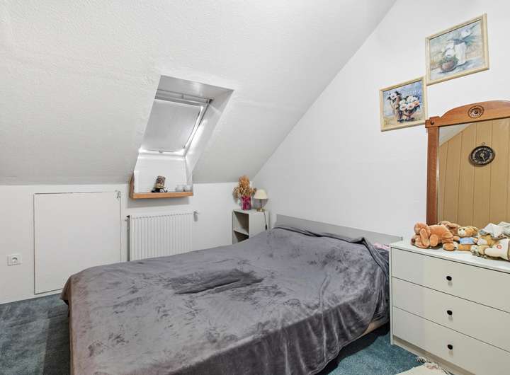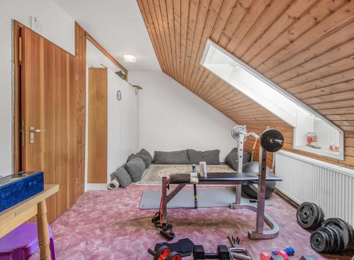 Das ausgebaute Dachgeschoss bietet zusätzlichen Raum, der nach individuellen Bedürfnissen genutzt werden kann, sei es als Büro, Hobbyraum oder Stauraum.