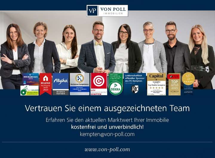 Die oben genannte Immobilie wird durch die VON POLL IMMOBILIEN-Geschäftsstelle Kempten / Oberallgäu im Bieterverfahren mit einem Startpreis von 696.000,-- € zum Kauf angeboten. Bei diesem Verfahren haben Sie nach einem Besichtigungstermin die Möglichkeit, ein schriftliches Kaufpreisangebot nach Ihren eigenen Werteinschätzungen abzugeben. Zu beachten ist, dass der Angebotspreis nicht automatisch der Kaufpreis ist. Alle abgegebenen Gebote werden an den Eigentümer weitergeleitet, dieser kann dann den Kaufpreis festlegen. Sollte Ihr Gebot nicht den Erwartungen des Anbieters entsprechen, besteht für ihn keine Verpflichtung, Ihr Angebot anzunehmen, auch wenn es sich um das Höchstgebot handelt. Das Höchstgebot kann jedoch unter, aber auch über dem aktuellen Marktwert der Immobilie liegen. Ein rechtswirksamer Kaufvertrag über den Erwerb einer Immobilie kommt bei einem Bieterverfahren (anders als bei einer Auktion) ausschließlich durch notarielle Beurkundung des Kaufvertrages zustande.