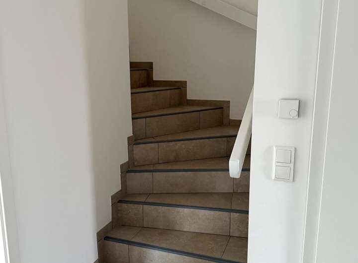 • eine geschlossene und geflieste Betontreppe führt vom Erdgeschoss in das Dachgeschoss