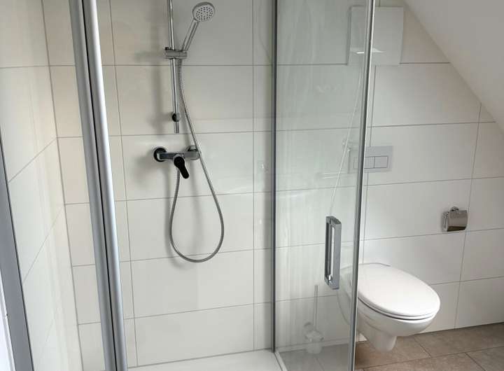 • im Erdgeschoss befindet sich ein Gäste-WC, im Dachgeschoss ein Duschbad mit großer Glasdusche - beide Bereiche sind geschmackvoll ausgestattet und verfügen über Fenster