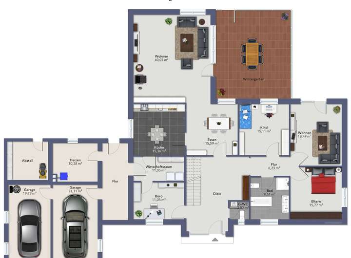 * großer beheizter Wintergarten