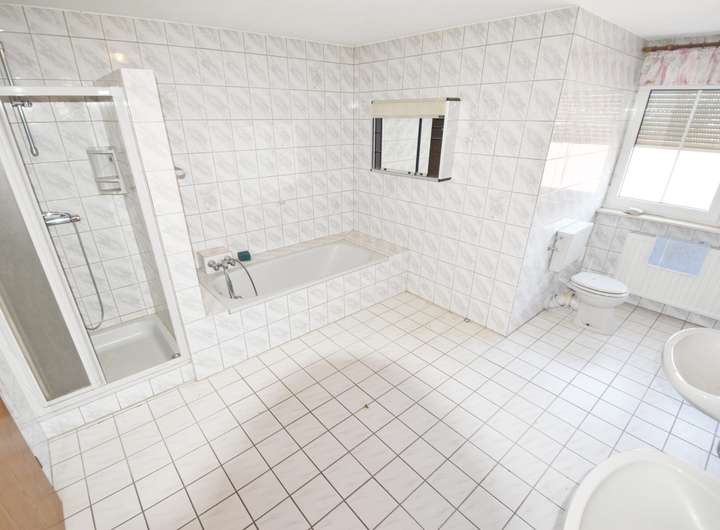 Das Wohnhaus verteilt sich auf zwei Etagen mit insgesamt zwölf geräumigen Zimmern. Die Immobilie kann durch getrennte Heizungs- und Wasseranschlüsse unkompliziert in drei Wohneinheiten unterteilt werden. Fünf Küchenanschlüsse und zwei große Badezimmer mit Dusche, Badewanne, Doppelwaschbecken, WC und Waschmaschinenanschluss bieten höchsten Wohnkomfort. Ergänzt wird das Angebot durch ein kleines Badezimmer, ein separates Gäste-WC sowie einen praktischen Hauswirtschaftsraum mit zusätzlicher Dusche, WC und Waschbecken.