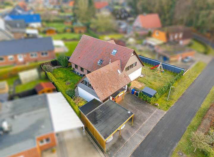 Dieses große Einfamilienhaus befindet sich in einem Wohngebiet in Edewecht-Osterscheps, eingebettet in eine ruhige und naturnahe Umgebung, die sowohl Privatsphäre als auch eine angenehme Nachbarschaft für Sie bereithält.