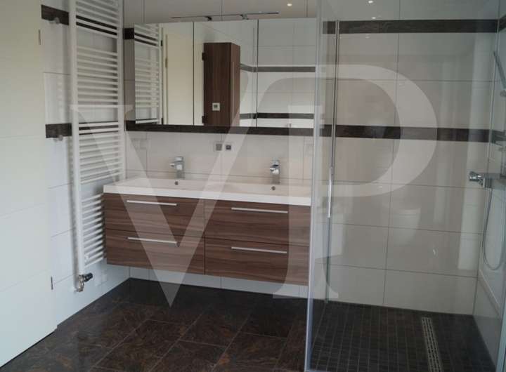 Im Obergeschoss befinden sich insgesamt drei Schlafzimmer, die optimal für Familien, Paare oder zur individuellen Nutzung als Arbeits- oder Gästezimmer geeignet sind. Das großzügige Vollbad ist modern gestaltet und verfügt über eine Badewanne, eine Dusche sowie zeitlose Sanitärobjekte. Hochwertige Materialien und eine geschmackvolle Auswahl der Oberflächen sorgen hier für ein ansprechendes Ambiente.
