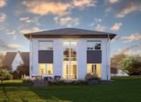 Der Grundstückspreis liegt bei 280.000,-€. Das Haus mit 154qm Wohnfläche kann für 315.990,-€ zusätzlich erworben werden.